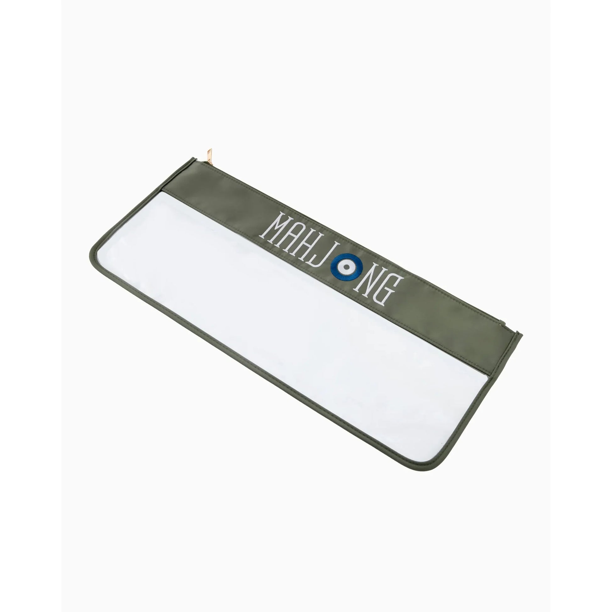 A beautifully crafted bag in deep forest green canvas, complete with sturdy embroidery in white and brown. Designed for durability with a spacious interior, a secure zipper, and a clear bottom section for easy tile visibility. The perfect travel-ready companion.